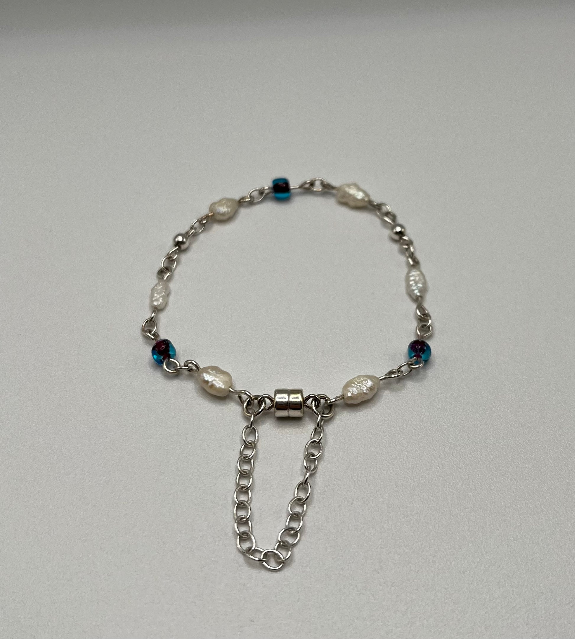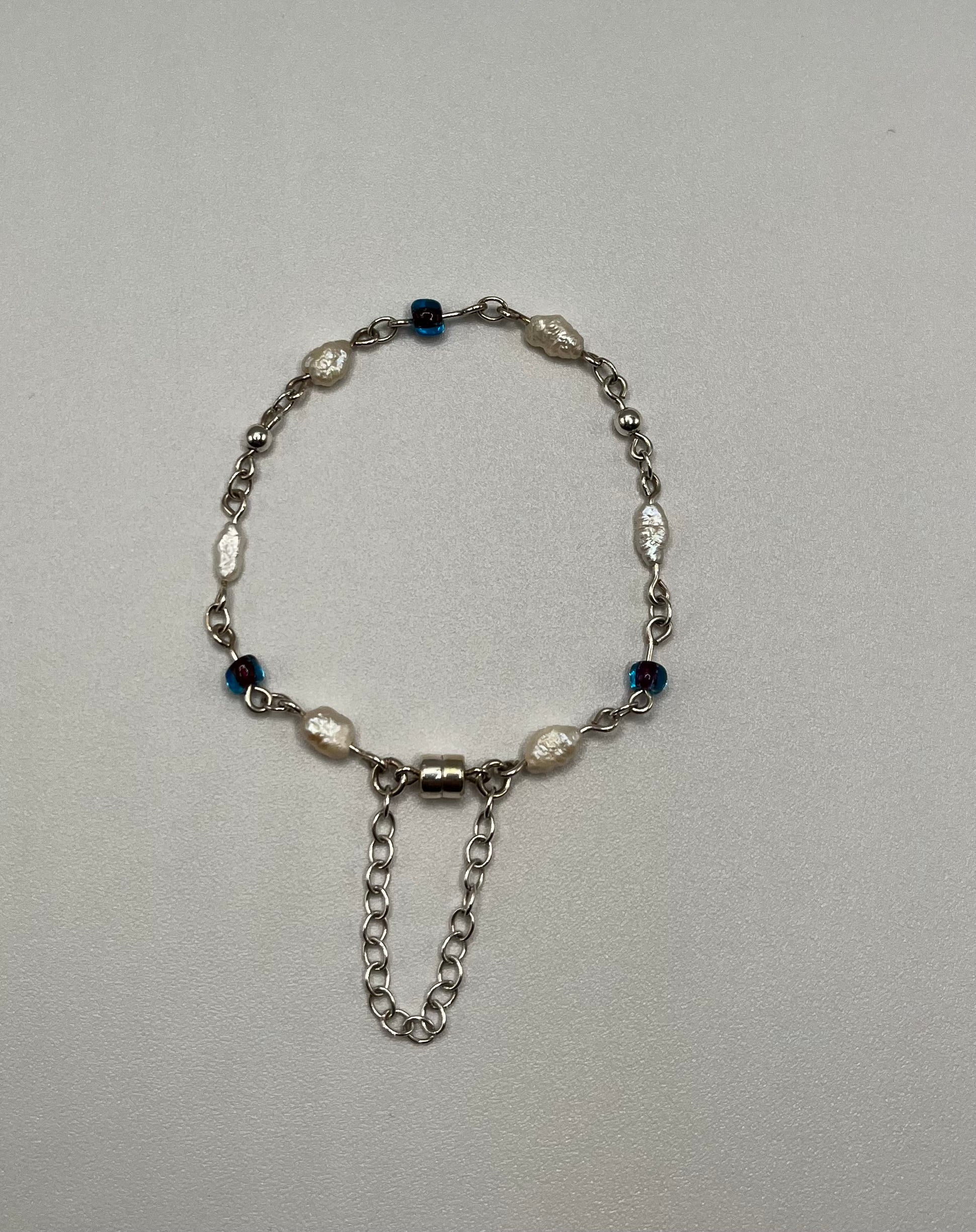 Conseil d’entretien : Pour préserver l’éclat des perles et du métal, évitez l’eau, les parfums et les produits chimiques. Rangez votre bracelet dans sa pochette lorsqu’il n’est pas porté.