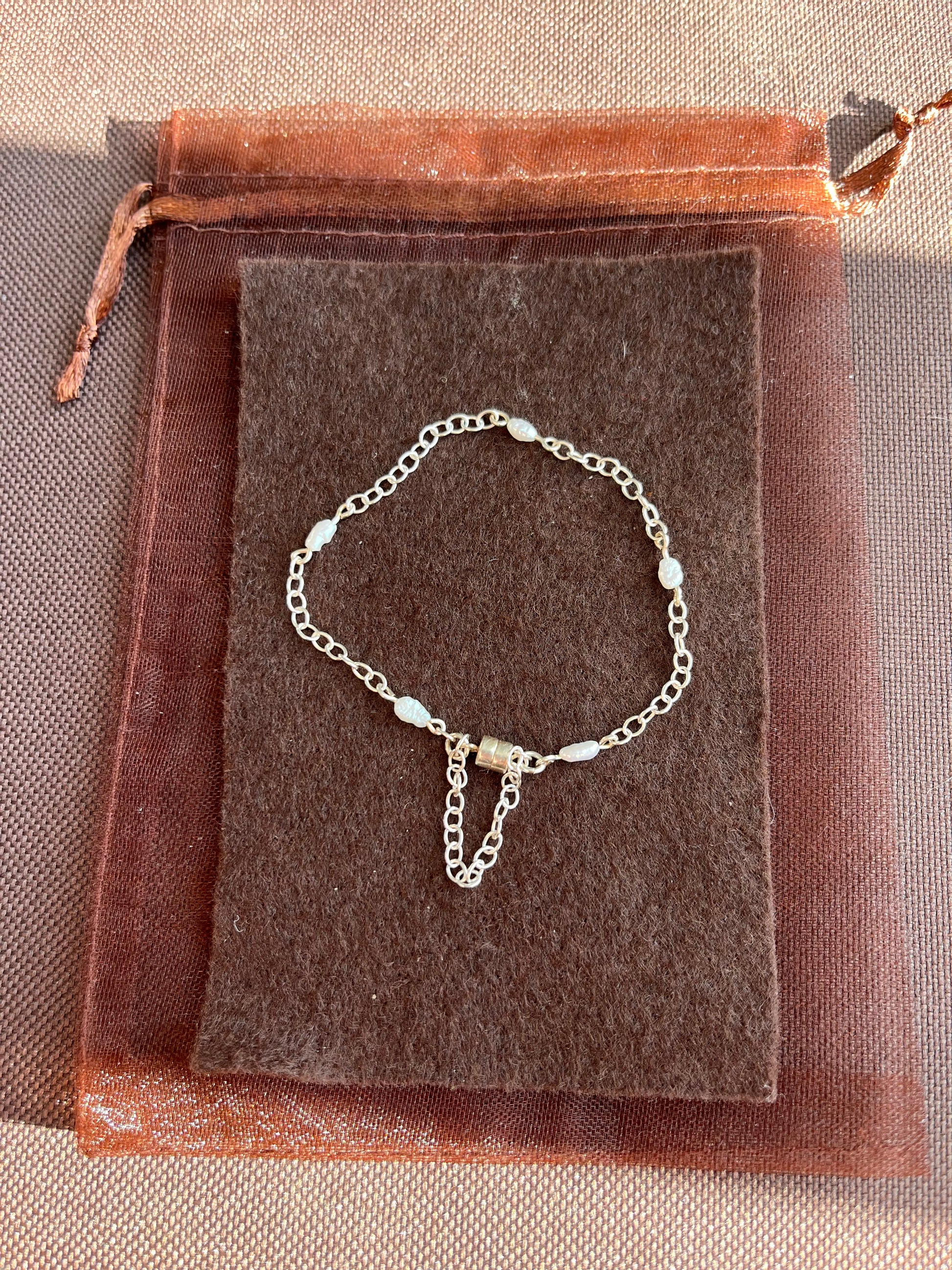 Un bijou lumineux en argent sterling, orné de véritables perles d’eau douce (env. 3 mm). Son fermoir magnétique, accompagné d’une chaîne de sécurité, assure confort et élégance au quotidien.
